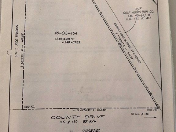 4.246 acres. Busy business area Front and side access. Conditionally rezoned from R-A to B-1. 533 feet of road frontage on 460. Asphalt side road which stops at Railroad which is rear property line 258 feet.  This property has a lot of potential.