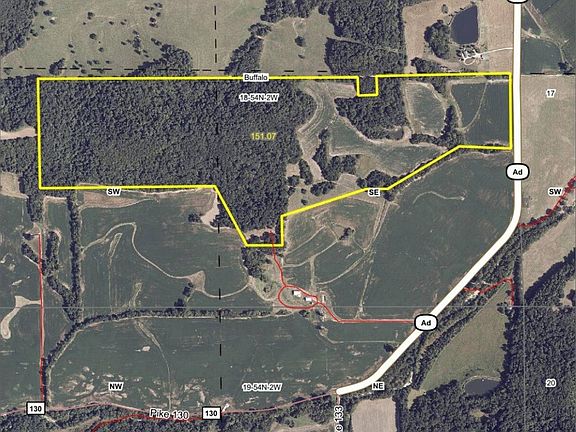 Premier Hunting, Recreation, and Income-Producing Tract with Hardtop Road Frontage Located just Northwest of Louisiana, Missouri, this 151.05 ± acre (m/l) tract is a rare mix of hunting, recreation, and income potential. The property boasts hardtop road frontage, providing excellent access and long-term value for future development or a permanent home site. Features include a spring-fed pond, an old cabin (sold as-is), and a pole barn tucked back in the woods, offering both rustic character and functionality. For income, approximately 25 acres of tillable ground are rented to a farmer at $150 per acre, providing consistent cash flow. The farm is surrounded by large tillable fields that create ideal edge habitat and help pull in trophy whitetails. Combined with a wet-weather creek, diverse timber, and established food plots, the property has everything needed to hold and grow mature deer. A strong trail camera history confirms the presence of big bucks on this farm year after year. Hunting opportunities are further supported by abundant turkey and other game. A well-developed trail system winds throughout the property, providing excellent access to all areas. Rolling terrain offers multiple elevated build sites with stunning panoramic views - perfect for a cabin, lodge, or private retreat. With electric and water available at the road, the property is positioned for both immediate use and long-term investment. With its combination of hardtop road frontage, natural beauty, utility access, proven hunting history, and income-producing acres, this Pike County farm is the type of property that seldom hits the market. The land also contains an old cemetery, adding unique historical interest - please inquire for details. • St. Louis, MO - approx. 90 miles (about 1 hr 30 min) • Quincy, IL - approx. 45 miles (about 50 min) • Columbia, MO - approx. 95 miles (about 1 hr 40 min) *Times, distances, maps, and boundary lines are approximate* Property Highlights: · • Hardtop road frontage · • 25 acres tillable, cash-rented at $150/acre · • Big Timber surrounded by large tillable fields, drawing trophy whitetails · • Proven trail camera history of big bucks on the farm · • Excellent hunting and wildlife habitat · • Spring-fed pond · • Wet-weather creek · • Old cabin (as-is condition) · • Pole barn in the woods · • Multiple established food plot areas · • Well-developed trail system · • Rolling terrain with expansive panoramic views · • Electric and water access at the road · • 151.05 ± acres (m/l) in a sought-after location