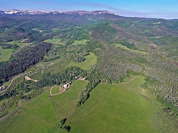 Located at the base of the Flat Tops Mountains, the 1,046+/- deeded acre Son Hi Ranch occupies a prime location in one of the most scenic areas of the Yampa Valley. The ranch is adjacent to the Routt National Forest and offers a well-balanced blend of hunting, angling, general recreating, and livestock operation. From its location on a private mesa, the 6,200 sq. ft. owner's home features spectacular panoramic views from the valley to snow covered peaks. Diverse topography is comprised of forested mountain terrain, lush upland pasture, as well as a total of 140+/- acres of irrigated hay meadow and pasture. In addition to significant water rights and two small lakes holding large rainbow trout, both North and Middle Hunt Creeks flow through the property. The ranch has long provided excellent big game hunting. Steamboat Springs is a 40-minute drive to the north and Vail is a 1.5 hour drive to the south. Access is year-round via paved highway and 3 miles of maintained county road.