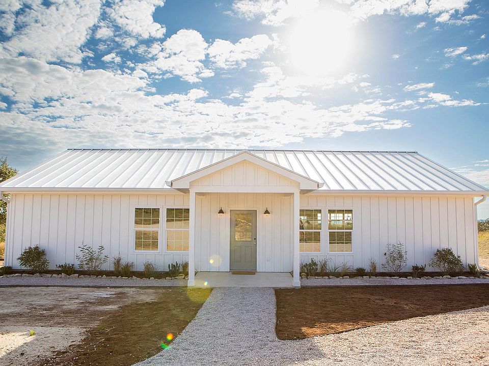 Escape to your own private retreat in the heart of the Texas Hill Country. This custom-designed home blends modern sophistication with timeless rustic charm. Featuring 3 bedrooms, 2 bathrooms, and 1,725 sq. ft. of beautifully curated living space, this home offers a rare opportunity to enjoy serene country living with every modern comfort.  Perched at over 1,000 feet of elevation, this home captures sweeping Hill Country views and unforgettable sunrises from the covered back patio. The 10-acre, ag-exempt parcel ensures low taxes and a wealth of possibilities.  Majestic mature oak trees dot the property, including a stunning 250-year-old “grandfather oak” that serves as the land’s proud centerpiece. Designed by acclaimed Claire Zinnecker, this home showcases her signature blend of warmth, texture, and understated elegance in every detail. The Kitchen: A true showpiece featuring high-end appliances, classic white cabinetry, marble countertops and a farmhouse sink.   The Living Spaces: Oversized windows frame panoramic Hill Country views while flooding the interior with natural light. Polished concrete floors, shiplap accents, and curated lighting complete the home’s cohesive, high-end aesthetic.  Whether you envision this property as your primary residence, weekend escape, or investment opportunity, it offers the perfect balance of privacy, design, and location — a rare find in today’s market.