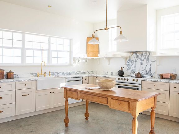 Sweeping hill country viewsOversized windowsCurated lightingCovered back patioFarmhouse sinkMarble countertopsShiplap accents