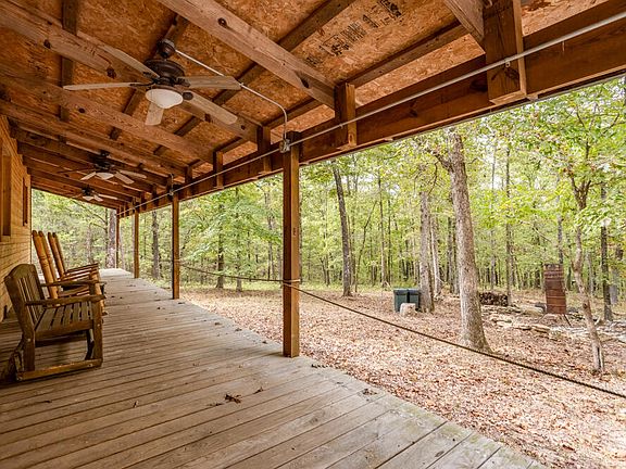 Located just minutes outside of Gainesville, these 69 +/- acres encompass everything the Ozarks have to offer at an affordable price point. This secluded hunting retreat has been a family treasure for the current owners for many years. It's not often that an opportunity comes along at such a turn-key setup. The property is bordered by a dead-end county road on the north and south boundaries, allowing for multiple ingress and egress options. A 1,100' driveway leads you to a rustic 40'x50' cabin, perfectly situated in a secluded and stunning ridgetop setting. As you approach, you'll be greeted by views overlooking a spring-fed creek that winds below the driveway, a sight that truly must be experienced in person to be fully appreciated. The cabin itself features a spacious wrap-around porch, inviting you to relax and enjoy the surroundings. If you're running late to the deer stand, it's suggested that you finish gearing up on the front porch and keep your rifle close by.... you're likely to see deer cruising through within range of the cabin. Inside, you'll find an open concept living, dining, and kitchen area, with enough space for multiple beds or bunks. The layout also includes a separate bathroom and shower room, an attached carport for convenience, and a private well and septic system. The oversized well house doubles as a storage shed, adding some extra functionality. The 69 +/- acres are comprised of about 54 acres of hardwood timber draws and ridges, and about 14 acres of ridgetop pasture. The pastures allow for some incredible potential food plot locations, and the timbered acreage has some great white oak timber on it. The property has a great trail system, allowing you to traverse through most of the property with a truck or UTV. There is a beautiful spring-fed creek below the cabin, and there is one wildlife pond in the center of the property.