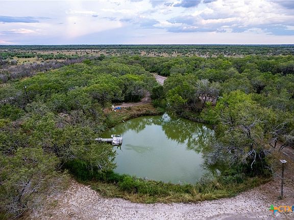 A water well-fed pond stocked with fish, complete with a dock, sits near the cabin, providing a serene spot to relax or cool off. The wet weather creek adds to the natural charm, winding through the property and enriching the local ecosystem. Beautiful bull Mesquite trees and thick brush provide ample shade and privacy, and cleared interior trails make it easy to explore every corner of this outdoor paradise.
