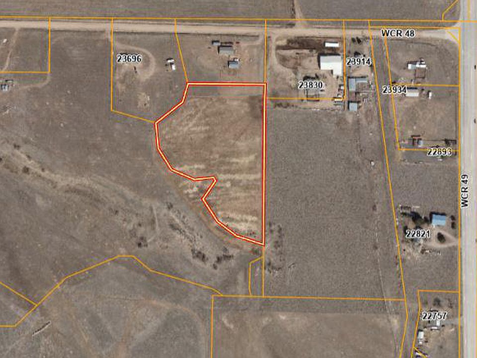 Build your dream home on this 4.71 Acre lot currently zoned AG. Acreage Great Views of the Mountains. Conveniently located between Greeley and Kersey. NO HOA or Metro Tax (currently). Septic and propane required. Water Tap available through Central Weld County Water District. Buyer to verify availability and pricing of water tap. CWCWD 970-352-1284. All oil, gas, mineral, surface and water rights excluded.