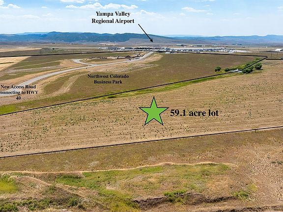 Development opportunity adjacent to Yampa Valley Regional Airport. This prime 59.1 acre parcel is included in a general improvement district (GID) within the Town of Hayden boundary and is considered as phase 2 of the North West Colorado Business Park. A Conceptual plan for 20 lots is completed and available. Use the 20 lot conceptual plan or develop separately with your own spin. As part of the GID there could possibly be an opportunity for bonds to supplement some of development costs. Currently, the land is designated as agricultural status which keeps the taxes low while you hold it or plan for development. The Town of Hayden is developing NWCOBP to attract new businesses and support the growth of existing ones. A new connection road to Hwy 40 is currently being planned and development of phase I of the park has brought necessary infrastructure to the boundary of this parcel. The lot is in an ideal location adjacent to Yampa Valley Regional Airport. This airport is the main hub for Steamboat Springs and offers direct flights to 17 different cities and sees over 240,000 passengers in 2024.