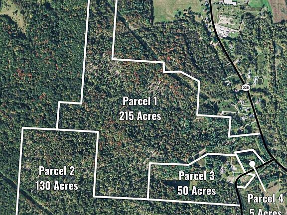 Parcel 1 is approximately 215 acres with road frontage along St Rt 328, Cox Rd, and a driveway easement from St Rt 328. This parcel is entirely wooded, featuring multiple building sites, a ropes course, 2 connected treehouses, excellent trails, and a seasonal creek.