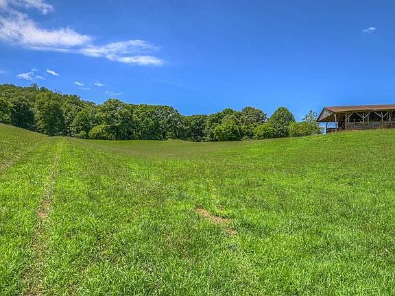 MOST BEAUTIFUL farm available in our mountain area currently for sale; 27.33 gentle, rolling acres. Beautiful pastureland with some wooded areas surrounding a cozy pond. There is a substantial barn in place as well as an open pole barn that houses a 5th wheel camper in good condition. Well, septic, and underground power in place. The creek running through the property feeds a relaxing pond to fish in, which is surrounded by mature fruit trees, including apple, pear, as well as grape and blue berry bushes. Mulberry tree on the property too! Come see this beautiful tract of land with a home site that is TO DIE FOR! Highly recommend agents use Land Glide to appreciate this great tract.