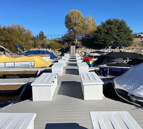 Dam 3 Slip 13. The best Location on the Lake and in deep water even during the occasional drought. Excellent location for watching the fireworks and just left of the Marina. Multiple Trek Dock Slips for low to no maintenance. Forth slip from the end on the left with easy in and out access. Across from Papoose lake with lots of adjacent parking, street parking, close to restroom, restaurant and the Inland Boat Center.