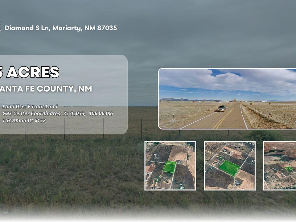 Discover the wide-open beauty of New Mexico on this 4.99-acre parcel located on Diamond S Lane in Moriarty. This spacious lot offers stunning views of the surrounding plains and distant mountain ranges, perfect for those seeking peace, privacy, and room to grow. Enjoy country living with plenty of space for a custom home, hobby farm, or weekend getaway--while still being just a short drive to I-40 for an easy commute to Albuquerque or Santa Fe. Power is nearby, and the land's level terrain makes building simple. Experience the tranquility of rural life and the charm of Moriarty from your own slice of high desert paradise.
