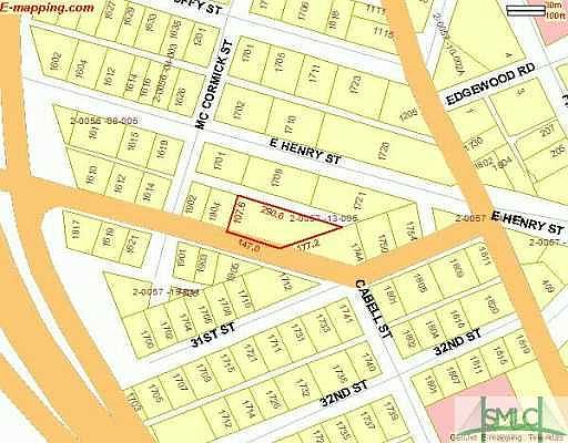 High level lot near Gordonston with mature live oaks. Savannah Grey Brick wall traverses the back of the property line - Best deal @ $6.50/SF