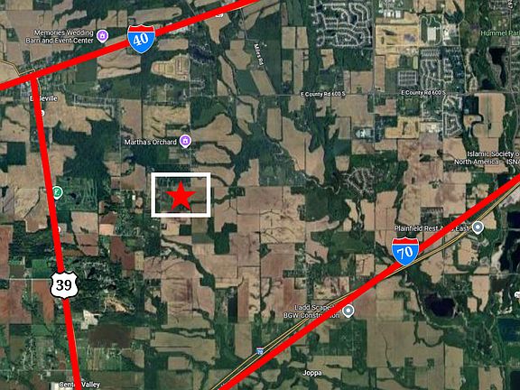 71.69 Acres of Prime Hendricks County Land - Mill Creek Township. GREAT LOCATION! 2 Miles south of US 40, 2 miles East of Hwy 39 and 5 Miles to I70. 964 feet of road frontage. An exceptional opportunity for both farmers and developers in the heart of Hendricks County's Mill Creek Township. Spanning 71.69 acres, this versatile property offers a rare combination of nearly 60 acres of highly productive tillable farmland and more than 8 acres of mature woods-perfect for continued agricultural use, future development, or long-term investment. Currently used for row crop agriculture, this land provides excellent soil productivity and income potential for farming operations, while also offering future possibilities for rural residential or estate development given the area's steady growth and easy access to Plainfield, Danville, Clayton, and I-70. The property features a 40x24 barn ideal for equipment storage, along with two utility sheds, making it immediately functional for active use. With its rolling open fields, wooded backdrop, and scenic countryside setting, this acreage delivers both practicality and beauty. Property is just to the southeast corner of the T located at E. Co Rd 700 S and S. County Road 400 E (just south of Martha's Orchard).