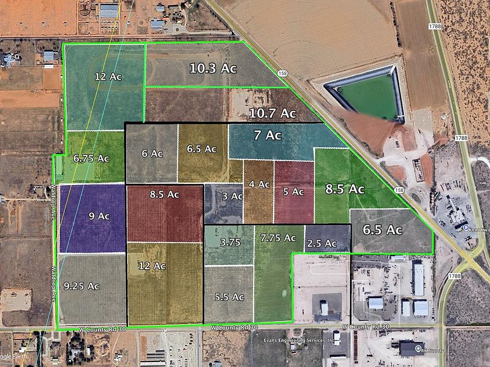 Welcome to Gardendale TX Equally North of Midland & Odessa sitting on the County Line of Ector / Midland / Andrews - All Tracts Sit inside Midland Co. This area is Known for Great Water & Industrial Yards with Ease of Access to Northern Permian Basin / Western Texas / New Mexico. Yards Sizes in All Sizes to meet Any Companies Needs. Minimal Restrictions to give Maximum uses, Tract sizes 2.5 acres to 12 acres 5 lots w/ frontage on Hwy 158 & 4 w/ Frontage to CR 30 aka Goldenrod. Gardendale Water may be requested, yet no sewer is nearby septics will be required. Tracts can be changed or combined.