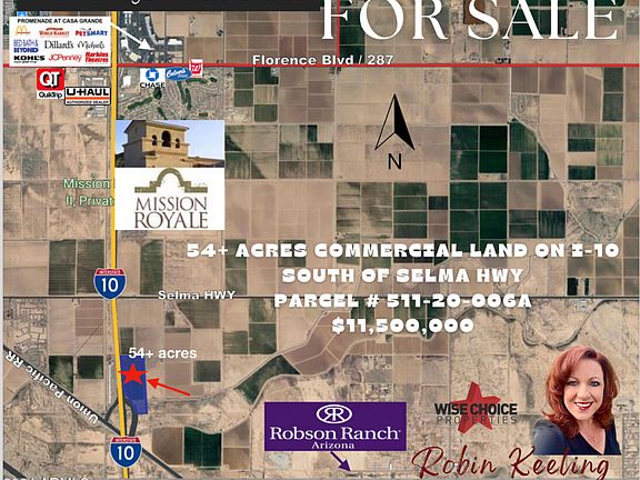 Great investment oppertuinity with I-10 freeway frontage with future use zoneing as Commercial. In the near future ADOT will remove the I-10 west bound on ramp at Jimmie Kerr and move it North to Selma Hwy. With the understanding that a frontage will be put in along I-10.