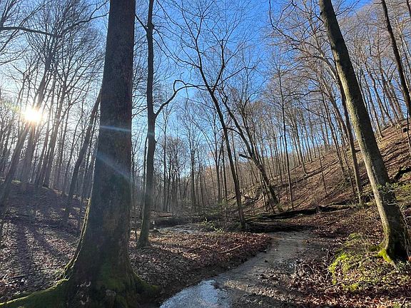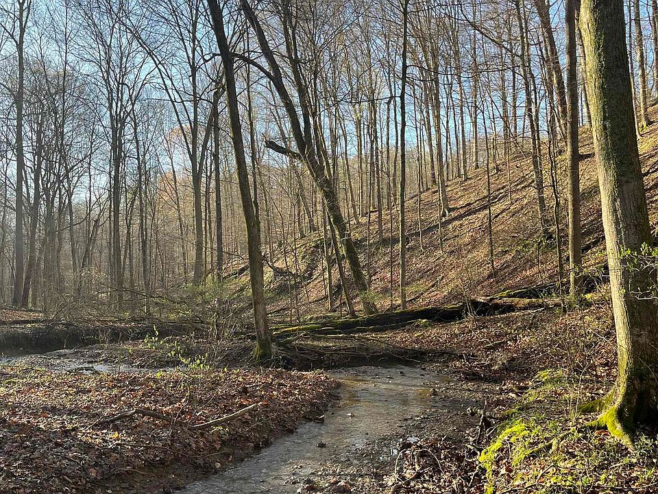 ONLINE AUCTION ENDING May 22 @ 6:00pm EDT. Welcome to a nature lover’s paradise that is this rare acreage on Bloomington’s East side. Nestled within the serene Lake Monroe Watershed area, this 72.83-acre woodland plot awaits its next steward. With frontage on E Lampkins Ridge Rd, the property boasts two picturesque ridge lines, offering potential building sites with breathtaking views. A tranquil creek scattered with geodes meanders through the property, which is home to morels and chanterelles in the spring. This land is habitat for a range of wildlife; white tail deer, wild turkey, red fox, Eastern box turtles, owls, downy and pileated woodpeckers, and other migratory birds are commonly seen. A recent timber appraisal demonstrates impressive timber value on the property, including quality white oak, red oak, black oak, upland oak, hickory, sugar maple, tulip poplar, wild cherry, beech, sycamore, shagbark and pignut hickory. The owners also planted a substantial black walnut grove in the 1990s. For those seeking solace in nature, this property is a rare gem, with Lake Monroe, Paynetown State Recreation Area, and Brown County State Park just 15 minutes away. You can also enjoy the amenities of city life, within a 5-minute drive to Bloomington’s East side, 20 minutes from Nashville, 60 miles from downtown Indianapolis, and 100 miles from Louisville, KY.