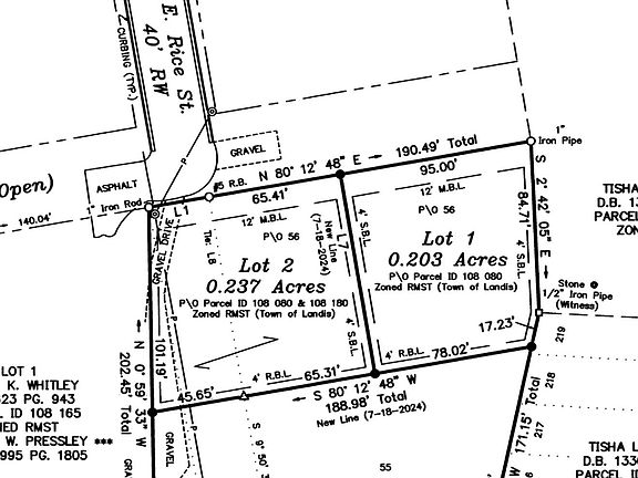 Rare opportunity is knocking with 2 level parcels zoned RMST in the South Rowan district! Builders and investors take note! This .44-acre offering includes 2 separate parcels zoned Residential Main Street Transition, providing a range of possibilities for single-family or multi-family development. Located in the South Rowan school district, both lots are level and feature road frontage on E Rice St in lovely Landis. Lot 1 offers .20 acres with approximately 95 feet of road frontage and Lot 2 offers .24 acres with approximately 65 feet of road frontage. City water is available (tap fees and approval required) and a survey is available for your convenience. Whether you're looking to build your dream home or expand your building portfolio, this is an excellent opportunity with flexible zoning and a central location. Don't miss your chance to secure land in an ever growing area with strong development potential!