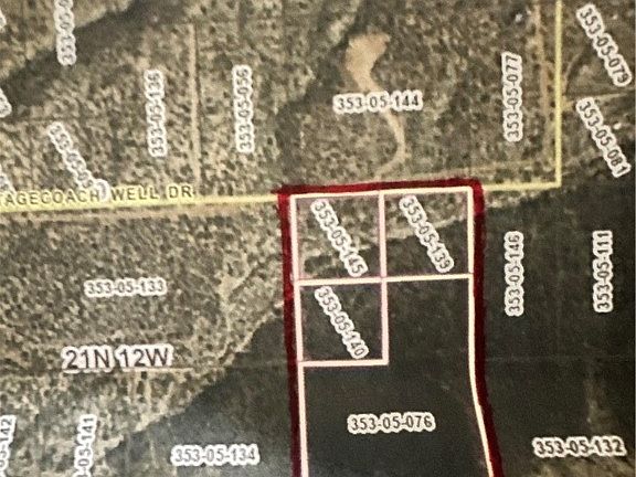 Awesome views, sunsets, starry skies and beautiful terrain! This property is a great potential site for a house and barn with easy access from county-maintained Stagecoach Well Road. This gorgeous 20 acres with 4 lots (parcel numbers 353-05-076, 353-05-140, 353-05-145 and 353-05-139) is heavily wooded with wild desert plants including juniper trees, agaves, various cacti, wildflowers, rocks and minerals. Water haul is available, and wells are nearby. Mobile homes are allowed. This would be a great wind or solar energy project for a future home. Telephone lines are at the property. A natural game trail meanders diagonally through the property. Call your agent today, to schedule your tour for this beautiful rural property!
