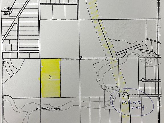 Parks Highway to Mile 83. Take immediate left once over bridge at Kashwitna River and follow easement back, staying to the right, to property. 20 acres of Old Growth near the river. Raw land with easement road access. Excellent location for your hunting, fishing, camping adventures and just north of Willow. Lakes and Rivers are abundant in this location and plenty of wildlife adventures, too!