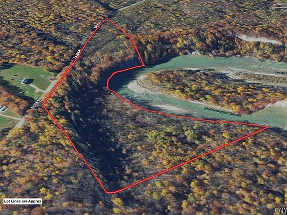 The acreage consists primarily of hardwoods with some pines and scattered brush. There is an established driveway that leads back to a private area. There is a camper on site which looks to be in unusable condition and has no assigned value. There is an old electric service present which could probably be repaired. The northwest side of the property is level and has amazing breathtaking views over the Cattaraugus Creek. This is a great spot to build a little camp and enjoy the views over the creek. The east side of the property drops down quite a bit and is level with the creek, and it also borders the Seneca Nation Reservation. This part of the property is accessible but not easily. Whitetail deer and turkey sign throughout for great hunting. The property has 1,080 feet of road frontage. All rights convey.