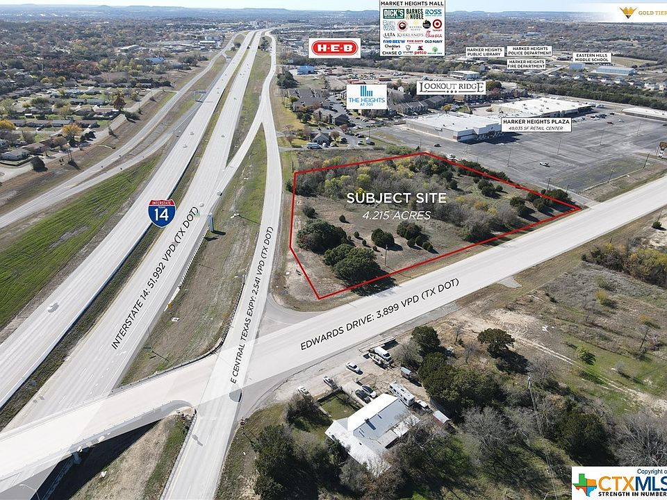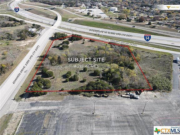 This offering is for 4.215 acres on the hard corner of E Central Texas Expy and Edwards Drive.