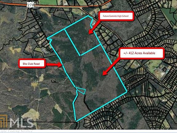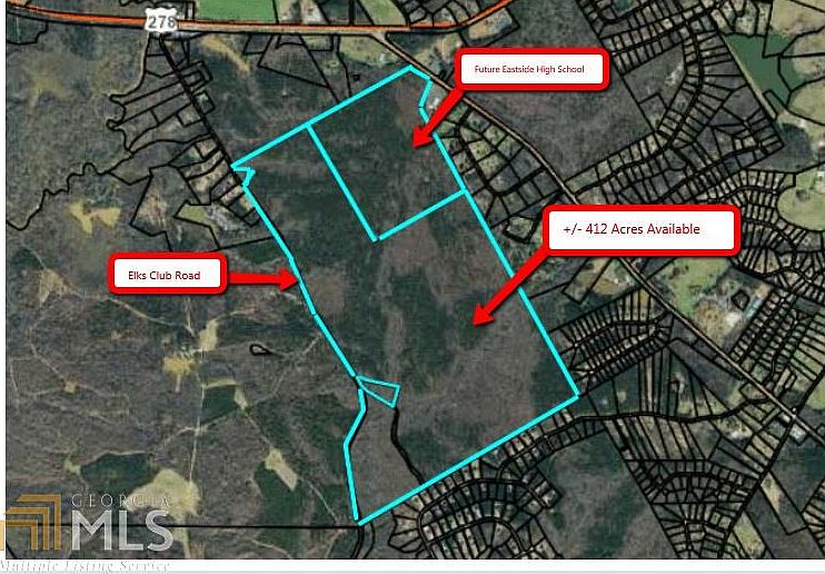 Exciting opportunity to purchase and develop large acreage tract in east Newton County. +/- 412 Acres with considerable road frontage on Elks Club Road (estimated at over 1 mile). Location is under 4 miles to town center of Covington, under 7 miles to Takeda & new Facebook data center, just over 2 miles to interstate 20. Homes in immediate area range from mid $300s - well over $500k. Popular east newton schools make this a superior location.