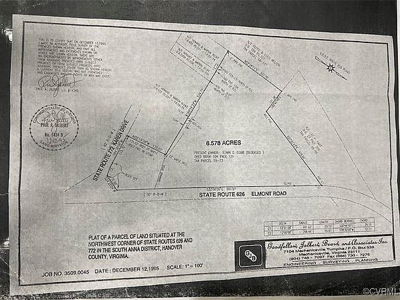 This 6.58 acre wooded parcel sits on a corner with over 900 ft of road frontage in Hanover County Va. See tax records and check with the county on zoning possibilities. All soil work will be the buyer's responsibility.