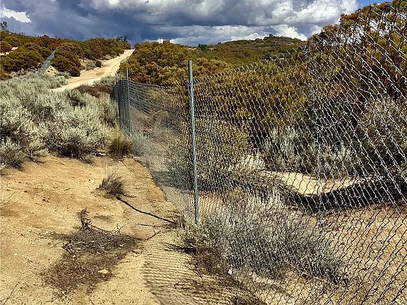 Incredible views of Terwilliger Valley from this 2.27 acre fully fenced and gated lot. 6 ft. chain link fencing surrounds property. 550 ft. deep well. 3,000 gallon water tank and 550 gallon additional water storage. Well house. Chain link fence has 3 feet of galvanized hardware cloth around the bottom of the fence to keep critters out. Cleared pad and roads inside the property. Corners are identified. A Honda 9,000 Watt generator is available for electricity. Very quiet. Area of nice houses and quiet neighbors. Varied topography with lots of native vegetation. Buyer to check with Riverside County Planning Dept. for specific use. Zoned RT. Property is being sold in its present condition.