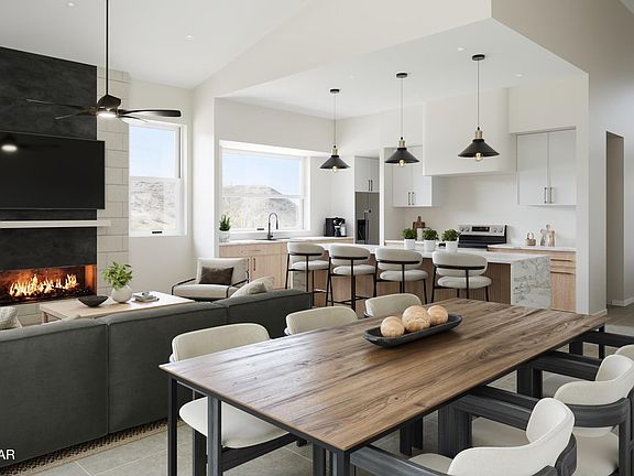 This home includes 2,033 sq ft of garage air conditioned, 73-ft deep RV garage with a 16x14 ft tall garage door + 2 car garage. A beautiful open kitchen layout with a walk around pantry and a large kitchen island. A Fireplace area for cozy nights, and a laundry room that meets your Primary closet for convenient living. 8' tall doors throughout with 10'walls and vaulted ceilings in living room.