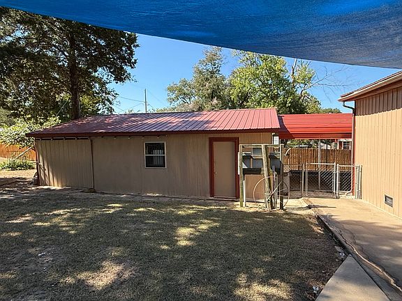 Welcome to this truly one-of-a-kind custom metal home filled with handcrafted design, vintage character, and timeless craftsmanship - sitting on approximately 0.30 acres just 1/2 block from Lake Eufaula. From the moment you arrive, you'll notice the charm - a two-car garage, covered carport, and beautifully landscaped yard that sets the tone for what's inside. Step through the front patio sunroom featuring flamingo wallpaper and an antique stained-glass window imported from Windsor, England, and you'll immediately feel the personality and creativity this home offers. Inside, the spacious living area is framed by hand-milled cedar beams and trim, creating warmth and rustic elegance throughout. The open-concept kitchen flows seamlessly from the living space and features a custom cedar Butler's pantry, matching the home's handcrafted woodwork and providing extra storage and style. The dining area is a true focal point, showcasing a 100-year-old set of saloon doors and another antique stained-glass window from Louisiana, adding a unique glow of color and history. A sliding barn door opens into a cozy office nook, perfect for working from home or enjoying a peaceful retreat. The home includes four bedrooms and two full bathrooms, each with their own charm. The primary suite offers a spacious layout with a walk-through closet, hand-thrown ceramic sinks hand-painted in South Africa, and a clawfoot soaking tub that creates a luxurious, timeless feel. The second bathroom features a Jacuzzi tub, perfect for relaxation after a day at the lake. The mudroom/laundry area is both functional and artistic, accented with Cypress wood reclaimed from an 1800s Louisiana mansion and an additional antique stained-glass window, blending history and beauty. The home also includes beautiful tile flooring throughout, and a 3.5-ton HVAC system installed just two years ago for efficient, year-round comfort. Outside, enjoy a peaceful setting with an outdoor shower and sink conveniently located off the back door - perfect for rinsing off after lake days - along with a storm cellar for safety and convenience. Every inch of this home combines historic character, craftsmanship, and comfort in a way that's truly unmatched near Lake Eufaula.