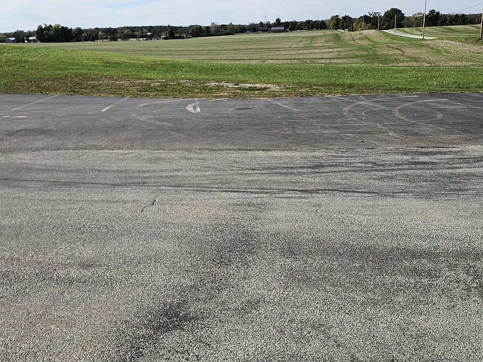 Just over 1 acre, this corner lot has a paved black top parking lot with 10 parking spots and backs up to farming land. Currently the land is used for church/place of worship.