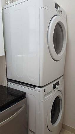 Apartment includes a full bathroom and kitchen. High vaulted ceilings with recessed lighting. French doors, many large windows, and plenty of natural light. Porcelain flooring throughout. Kitchen includes granite countertops, cabinetry, stainless steel range hood, stainless steel electric stove-top and oven, stainless steel dishwasher, and stainless steel refrigerator. Clothes washer and dryer installed in unit. Refer to pictures. Giant (grocery store) and shopping center (including Bank of America, Capital One Bank, 7-Eleven, bakeries, and restaurants) in walking distance.