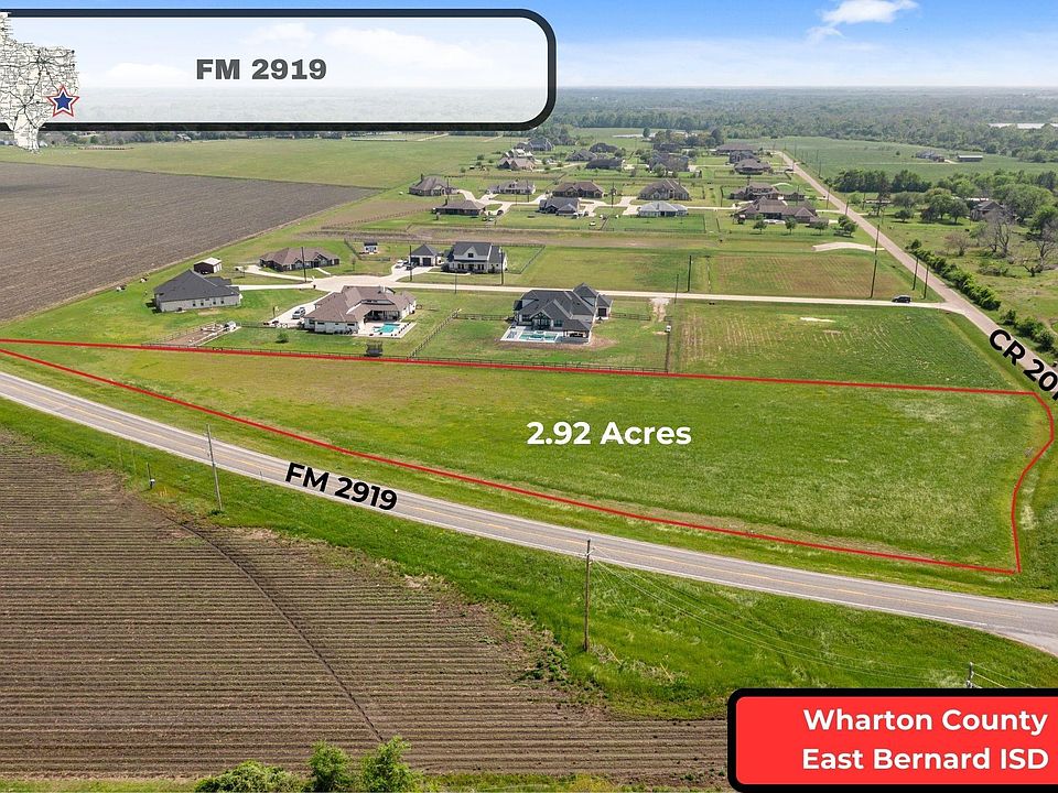 Invest in the future with this PRIME COMMERCIAL development opportunity in Wharton County and zoned to East Bernard ISD!! This tract is triangular in shape with approximately 784 feet of frontage feet FM 2919 and approximately 275 feet on County Road 201. This commercial use only property is surrounded by 3 residential developments, is only 1 mile from Hwy 60 in East Bernard and 6 miles from Hwy 59 in Kendleton in Fort Bend County. Located in FEMA Flood Zone X, this property is determined to be outside of the 100-year and 500-year floodplains according to the FEMA flood maps. Don't miss out on this incredible opportunity to secure this commercial use tract. Contact us now to explore the possibilities & turn your visionary dreams into reality!