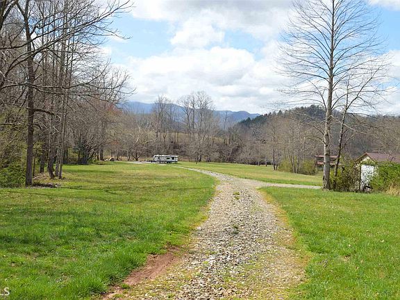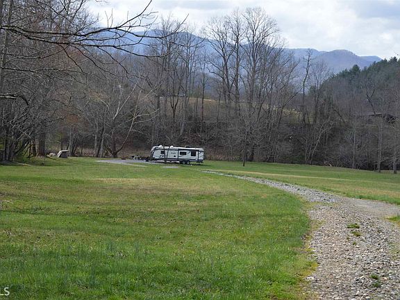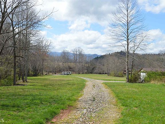 Breathtaking park like setting located just outside of town! This 4.2 acre parcel has a branch on both sides of the property and wrapped along the bottom point by r Hightower Creek. This is a big water lot with long distance Mountain Views. A metal garage is on the property for storing your tools and toys. Trophy trout fishing just minutes to Lake Chatuge, shopping, restaurants and the Georgia Mountain Fairgrounds. The camper on the property is not included in the sale. The lot has been perked for septic. Come start living the mountain dream.