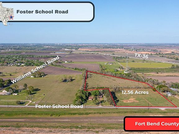 Invest in the future with this prime development investment opportunity in Fort Bend County and zoned to Needville ISD! This 12+ acre parcel offers 422+/- feet of frontage on Foster School Road, facing the upcoming Tejas Landing Subdivision! Two additional tracts of land totaling 99.8302 acres that are contiguous with this 12+ acres are also FOR SALE (MLS #s 828162 and 98164025), making the total number of contiguous acres available 112.3898. This tract is currently Ag Exempt according to the Fort Bend County CAD and it appears to be completely out of the flood hazard area according to current FEMA flood maps. Its strategic location and proximity to major roadways such as Spur 10, Hwy 36 and Interstate 69/ US 59 make this property ideal for residential or commercial development. Don't miss out on this incredible opportunity to secure your foothold in this high-growth potential area. Contact us now to explore the possibilities and turn your visionary dreams into a reality!