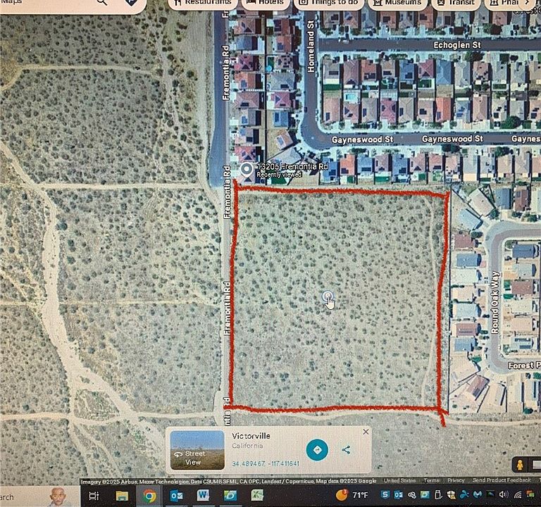 Great Development Opportunity in Victorville! This 9.6-acre parcel is ideally situated between two established residential neighborhoods and offers prime potential for new construction. According to the City of Victorville, up to 39 single-family homes can be built on 7,500 sq. ft. lots. The land is flat and usable, making it an excellent choice for builders and investors. Conveniently located less than 2 miles from major shopping centers including Walmart, Stater Bros., and Costco. Close to local schools, Highway 395, and just minutes from the I-15 freeway for easy commuting. Don’t miss this chance to bring a new housing community to one of the High Desert’s fastest growing cities!