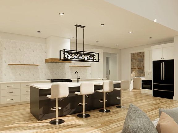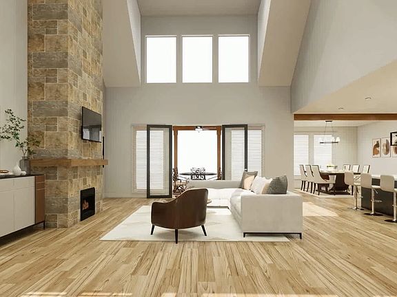 Stone fireplaceWooded lotOversized islandGourmet kitchenGrand great roomTranquil creekSpa-inspired primary suite