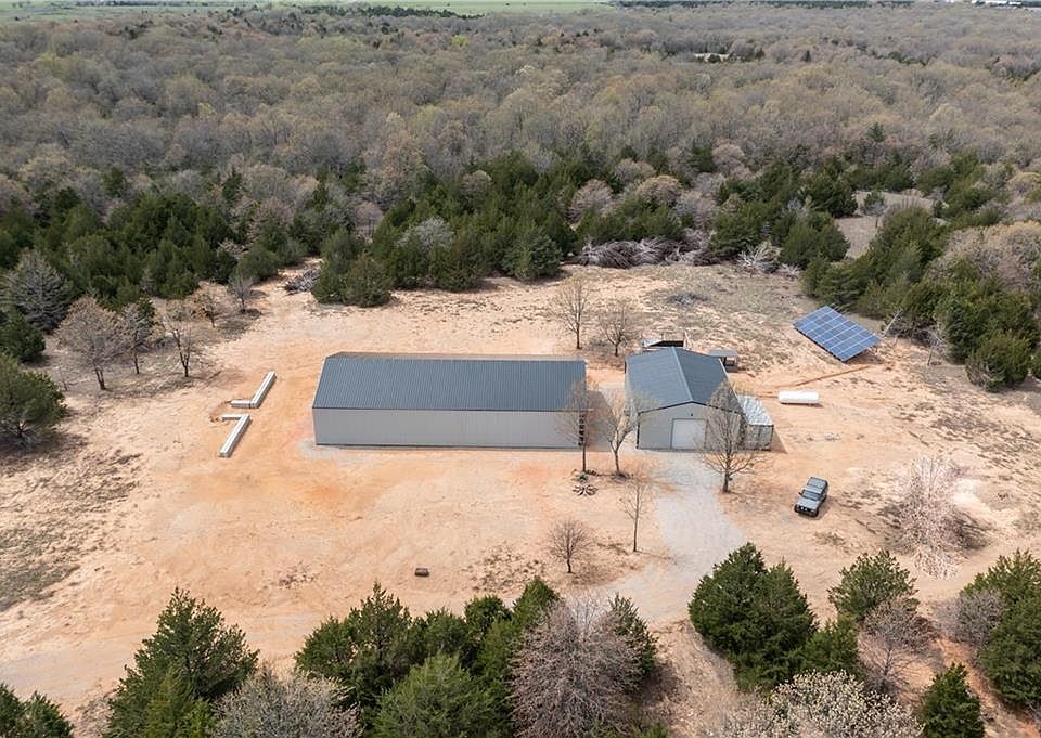 Beautiful 80 acres with no restrictions and totally secluded property is 100% Off Grid! With 12,000KW Solar, 32KW hour battery-bank system all in place for new owner. Water well with commercial variable speed pump, septic, 1000 gallon propane tank, rainwater collection system all in place for new owner! There is a 30x40 insulated metal building/shop with an apartment including bath and kitchenette. 40x80 post frame metal building that can be finished however new owner chooses along with a chicken coop and dog kennel. There are 2 amazing spring-fed ponds, gorgeous trees and pasture areas with tons of wildlife to enjoy.Buyer & Buyers realtor to verify all information.