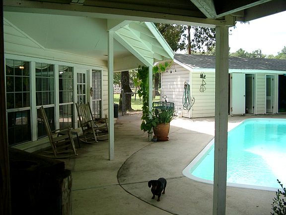 Amazing combination of quiet rural setting and only 5 minutes drive from the Woodlands Mall. Everything you need for your family to live happy and safe is available at this property. Modern 6 bedroom house with all the amenities including a pool is surrounded by serene wooded pastures. Horses allowed!