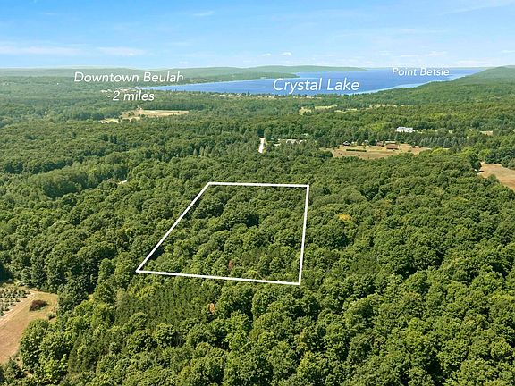 SEPTIC system already installed! Discover a remarkable opportunity with this stunning 5-acre parcel of rolling land, complete with mature trees and a septic system! Ready-to-use concrete pad with RV port already installed. Hidden in the gently rolling hills surrounding the highly coveted Crystal Lake! This property is a blank canvas for your dreams, whether you envision a beautiful home, a serene camping retreat, or an adventurous hunting ground. With a diverse mix of hardwoods, pines, and open spaces, it requires minimal clearing, allowing you to easily bring your vision to life. The gently rolling and level terrain is perfect for both traditional and walkout-style builds, offering flexibility for your design. Experience the best of both worlds with a peaceful rural setting that keeps you just moments away from all the conveniences you need. Enjoy easy access to downtown Beulah, the crystal-clear waters of Crystal Lake, Crystal Mountain Resort and nearby golf courses. Don’t miss out on this incredible chance to create your own sanctuary in a prime location!