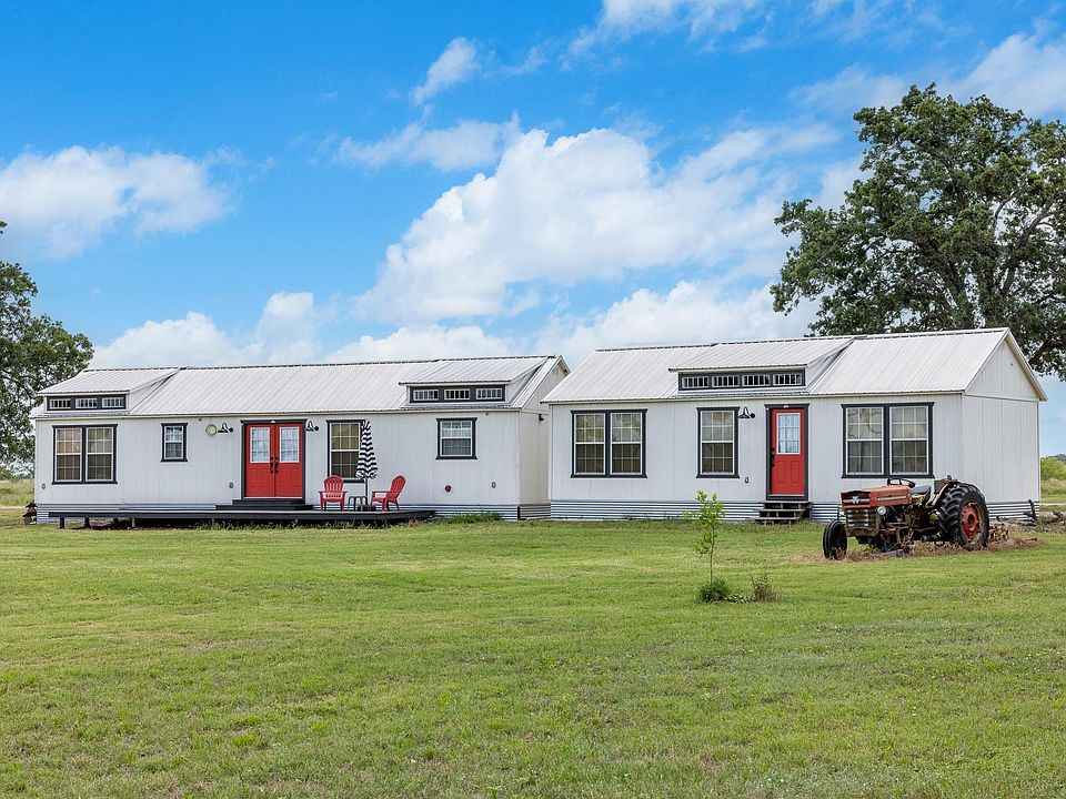 Welcome to the BFFs! The most charming getaway near Round Top and Warrenton! The main home is 800 sf and has a primary bedroom, living room with kitchen, loft area and additional full bathroom. The second home is 640 sf and has two bedrroms that share a jack and jill bathroom. The property is 10 acres and has a pond for fishing! It's stocked with fish. This property is the perfect retreat from the city life with paved road frontage.