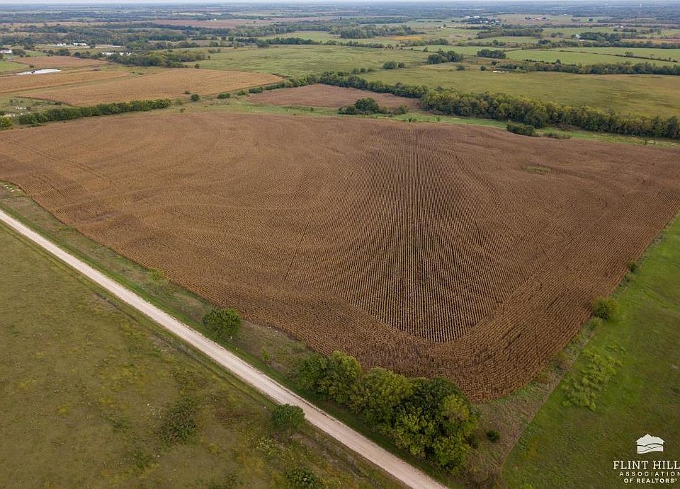 Just North of Harveyville, Kansas and ½ mile West of blacktop Harveyville Road, this property provides a multitude of opportunities! At just under 40 acres, there are roughly 32 tillable consisting of Class III Martin Silty Clay Loam soils. This tract is farmed by a local tenant who would like to continue farming the ground and currently has corn planted. Terracing was completed on the farm in 2023. The balance of the property consists of a native waterway and meadow with a beautiful Walnut lined hedge row. From the road, the property rolls to the South and West providing great sunset views. With the terrain and plethora of build sites, a walkout basement is a sure possibility and multiple sites exist for the construction of a pond. The South end shows great wildlife sign in the secluded tillable corner separated from the balance of the tillable as well as throughout the timbered hedge row. Electricity is at the Northeast corner