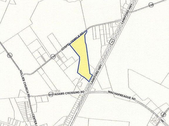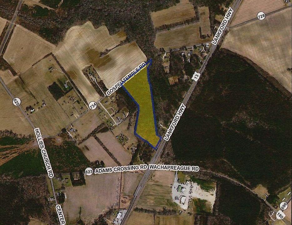 Prime real estate that fronts Lankford Hwy for a distance of 500 feet +/- and fronts Gospel Temple Rd for a distance of 1350 ft +/-!! Centrally located for quick access to all types of shopping and hospital less than 10 minutes away. Great place for a home or business. Excellent hunting piece. Airport flyover. Additional acreage for sale across rd 101-A-72 w/ 55A+/-