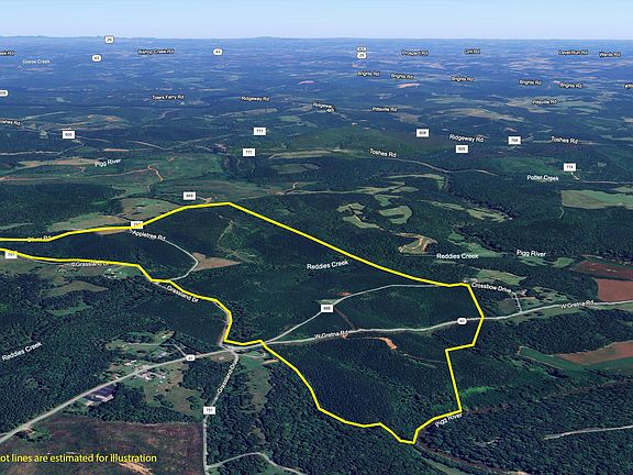 Excellent recreational property near Smith Mountain Lake. Road frontage along W Gretna RD (Route 40), Grassland DR and three other state roads. Pigg River frontage at the southern boundary and Reddies Creek runs through the middle. Purchaser responsibility to determine power availability and install well and septic. Pittsylvania County schools.