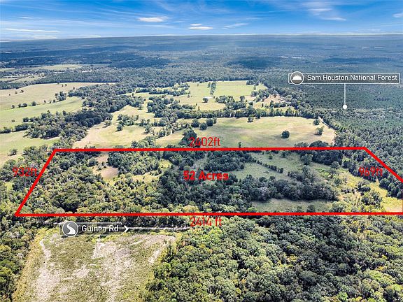 52 acres located on Guinea Road in Oakhurst, TX, San Jacinto County, right next to the Sam Houston National Forest. This property offers a peaceful rural setting surrounded by nature—perfect for building your dream home, a weekend retreat, or a long-term investment. Conveniently accessible from Highway 59, enjoy the tranquility of country living with the convenience of nearby amenities.