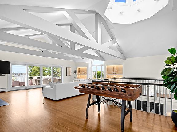 September 15, 2025 - May 15, 2026 @ $8k/month. Set within a prestigious gated neighborhood, this stunning coastal retreat offers expansive water views of Newport Harbor and is just down the street from the New York Yacht Club. The upper level is designed for grand entertaining, featuring custom kitchen with a large center island, wet bar and coffee station a back deck to grill your favorite meals. A spacious living area with a comfortable sectional sofa and TV is the place to relax and take in the water views after a long day at the beach. And the northwest-facing deck off the living room, furnished for lounging and al fresco dining for eight, is perfectly positioned to take in views of the iconic Newport Bridge and sunsets. On the first level, the ensuite primary is a serene escape with a private den/office, wet bar, soaking tub and dry sauna. Two additional guest suites each boast their own newly renovated bathrooms, ensuring comfort and privacy for all. The lower level is ideal for extra guests or family gatherings, offering a fourth sleeping room with twin beds, a full bath, and a cheerful playroom and kitchenette for rainy-day activities. Outside, enjoy a resort-like setting with an in-ground gunite pool and spa, pool house with a bath, and bluestone patio. Ample off-street parking and a 2-car attached garage all set on 1.19 acres of beautifully landscaped grounds. A rare combination of luxury, location, and lifestyle perfect for an unforgettable Newport stay.