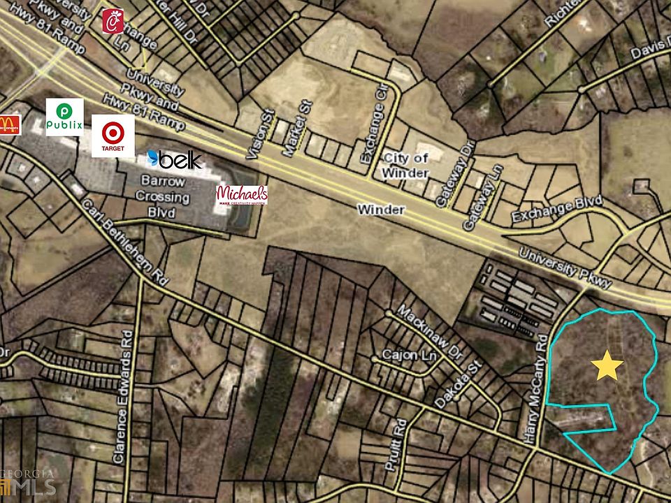 Almost 40 acres, just off Hwy 316 on Harry McCarty Rd. This property frontage on Hwy 316, Harry McCarty Rd. and Carl Bethlehem Rd. Close to Barrow Crossing shopping center (Target, Publix, etc.). Visible from Hwy 316.