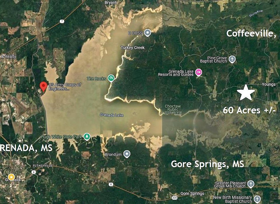 Located in Grenada County, this 60-acre tract is a true Outdoorsman's retreat. The property features 20-year-old pine timber and directly adjoins Corps of Engineers land at Grenada Lake on 3-Sides, giving you walk-on access to thousands of acres of public hunting land. Whether you're after deer, turkey, or small game, this area is known for its excellent wildlife habitat. The timber is well-established and offers both recreational and future investment value. Private and peaceful, yet only minutes from boat ramps and lake access, this tract is ideal for a hunting camp, weekend getaway, or long-term timber investment. With rural seclusion and direct access to some of the best public hunting in Mississippi, properties like this don't come along often. With Haven's rd splitting the property leaving 48 Acres +/- on one side and approximately 12 Acres on the other, there's easily two possible camp or home sites available. Call today to schedule a showing - Hunting season is just around the corner and you still have time to plant and hang your stands!