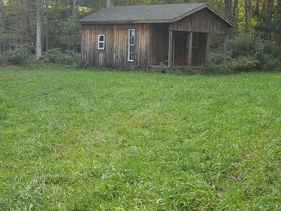 Property is ideal hunting area. 1 hunting cabin with insulation capable of sleeping 4-6 people with wood stove and hearth; insulated floors. Multiple pasture gates installed. Dead ash trees removed. There is pond and stream. Electricity is available on both roads. Forestry department cleared area for hunting. Current owner has run maple lines to over 200 sugar maples.