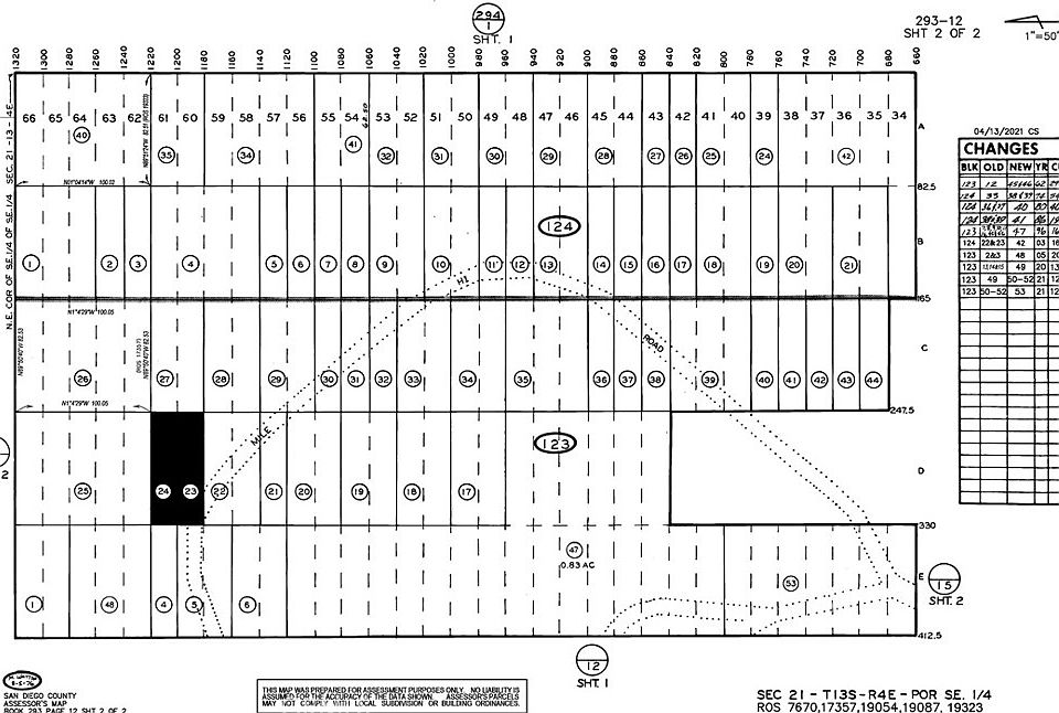 Land for sale, Julian, California, in the Harrison Park neighborhood. Two adjoining undeveloped lots located on Mile High Road. Could be the perfect opportunity to purchase residential land in San Diego County and enjoy all four seasons. Paracel numbers are 2931232300 and 29312324000. Combined lot size is 3,484 square feet. Few homes in area. Latitude and longitude coordinates are: 33.024336,-116.567705