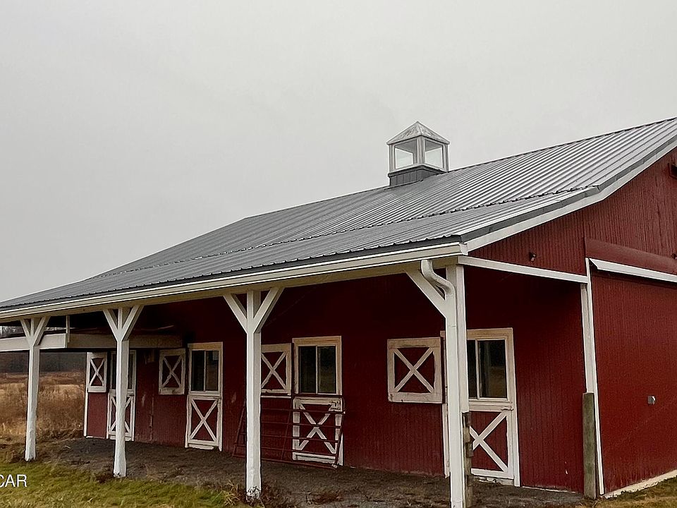 Horse barn on 5 acres in lovely Highland Lakes Estates. This sprawling building lot features a 1728 sq ft horse barn that is used as a climate controlled fitness center. Recently renovated in 2021; the building has a new furnace and central air less than 2 yrs old. A large hayloft could e easily finished too. Property has endless potential. 2 overhead doors with garage door openers.