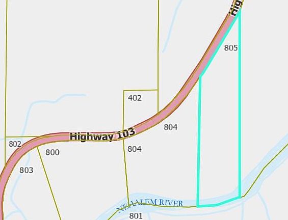 10 beautiful riverfront acres on the Nehalem River. The RA5 zoning will allow the parcel to be subdivided into two lots with each potentially having a home and an ADU. Easy access off of Hwy. 103 with higher ground to build out of the flood plain. Great opportunity for a farm or horses. Good sun exposure, close to Jewell School, easy access to Hwy.26 to beach or Portland. Come experience life on the river!